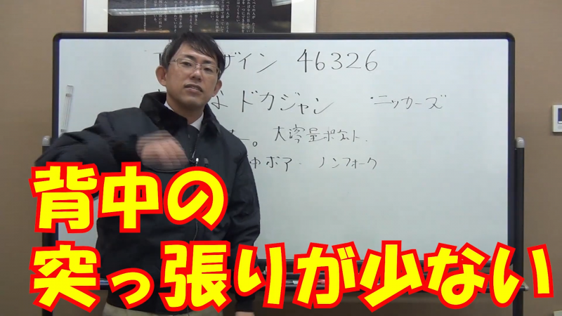 それが背中のノーフォーク仕様です。肩周りの型紙を工夫し、腕を伸ばした際の突っ張りを最小限に抑える設計により、高所作業や力仕事でもストレスフリーな動きを可能にしています。