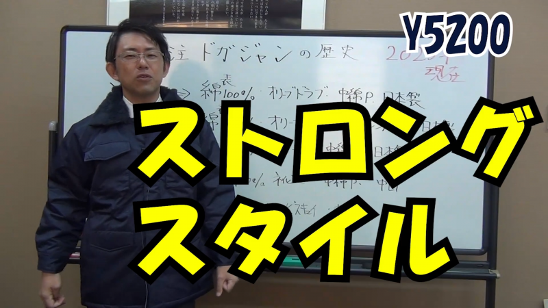 | 2. タフさと軽量性の融合「ナイロン100%」ストロングスタイル | 撥水性と軽量性を備えたナイロンモデルを紹介。裏地キルトでシャープなシルエットを追求したY520(ストロングスタイル)と、再販が期待される完売品Y10000の挑戦に言及。 |