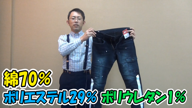 「これだけ細くて動けるのか?」という疑問は、一度足を通せばすぐに解消されます。素材構成は綿70%、ポリエステル25%、そしてポリウレタンが5%。特筆すべきはこのポリウレタンの含有量です。