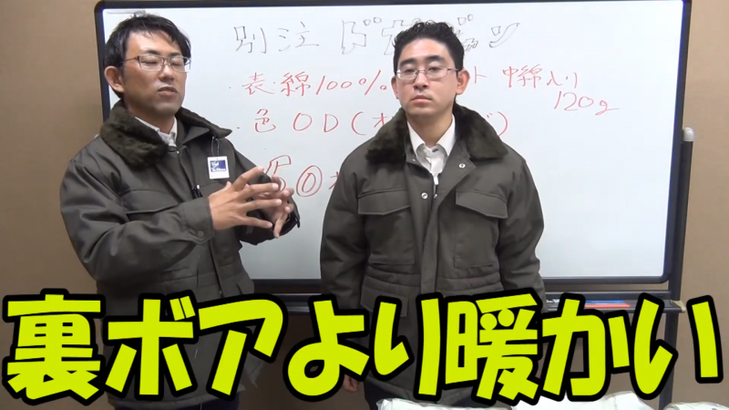 - 作業現場での防寒着として: 軽くて動きやすいため、長時間の作業でも負担になりません。綿100%素材は、火を扱う作業にも安心感を与えます。