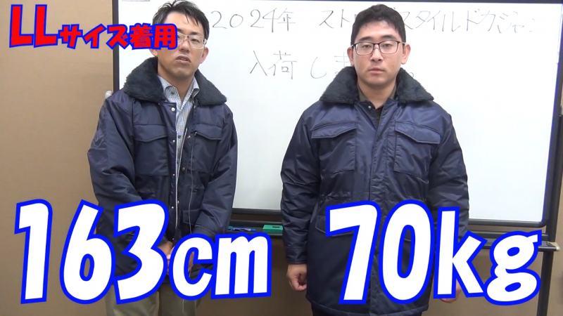 | スタッフC | 163cm/75kg | Lサイズ | 普段からガッシリ体型でLサイズを着用。厚手のインナーやジャケットの上からは「ボリュームがあるけどいける」程度。 |