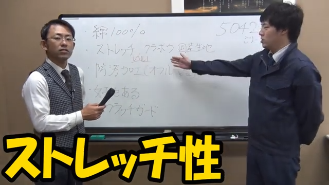 多くの現場職人が待ち望んでいたのが「綿100%のストレッチ素材」です。従来の綿素材は、耐久性や吸汗性には優れているものの、伸縮性がないため、腕を上げたり膝を曲げたりする動作に突っ張りを感じることがありました。