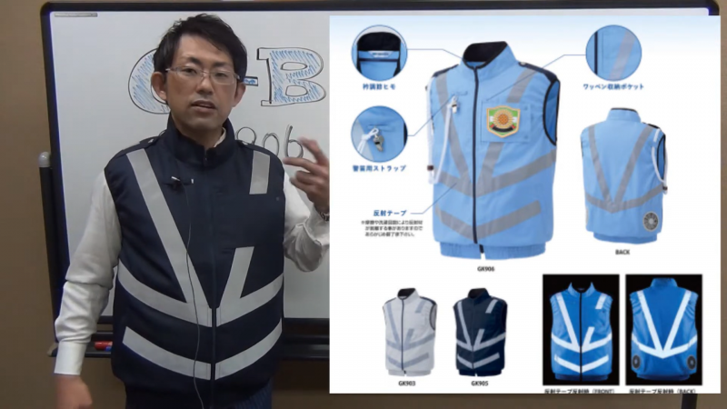 このベストは、単にファンを取り付けただけの作業着ではありません。警備のプロが求める「威厳」と「安全性」、そして「究極の涼しさ」を高次元で融合させた、まさに現場のための武装です。動画内でも語られている通り、警備専用のディテールが随所に盛り込まれており、一目見ただけでそのプロ仕様の風格が伝わります。