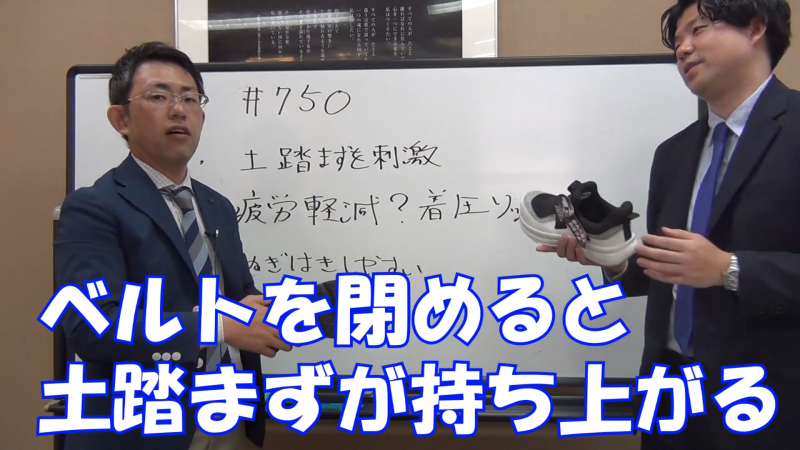 このシューズがこれまでの安全靴と決定的に違う点は、土踏まず(アーチ)を物理的に押し上げるシステムを搭載していることです。動画内でも解説されている通り、ベルトを締めるとインソールの下に繋がった構造が作動し、土踏まずをグッと押し上げます。これにより、足裏のポンプ機能をサポートし、血流を助けることで疲労軽減やむくみ対策に繋がるのです。
