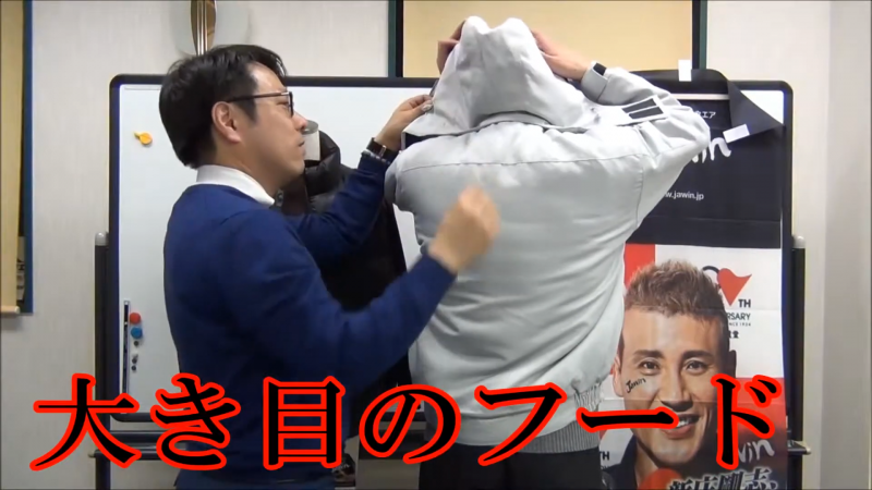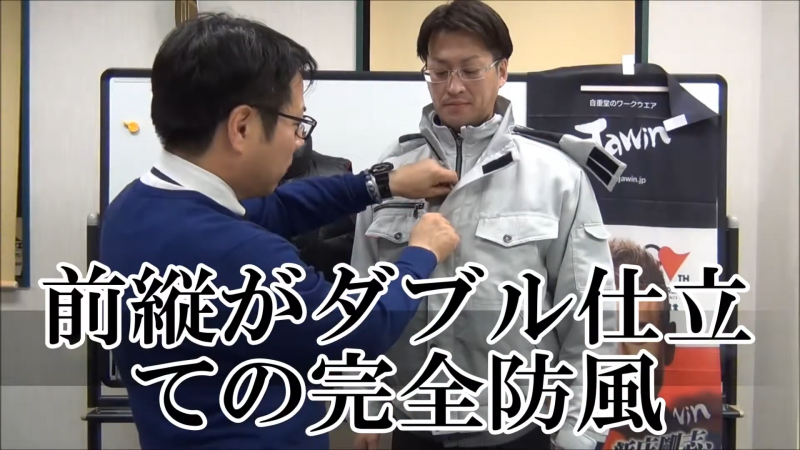 動画でも力説されている通り、この48420の最大の特徴は、ファスナーを覆うように設計された「二重の前立て」にある。通常のジャンパーではファスナーの隙間から冷気が染み込んでくるが、このモデルはマジックテープとボタンで厳重に密閉。外気の侵入を物理的に断ち切る設計だ。