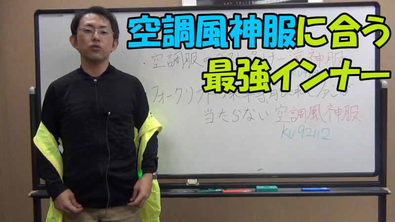 この座り作業の悩みを解決するために開発されたのが、ファンを従来の腰の位置ではなく、「真横」に配置した空調風神服です。(動画で紹介されたKU92112ベストなどがこれにあたります)。