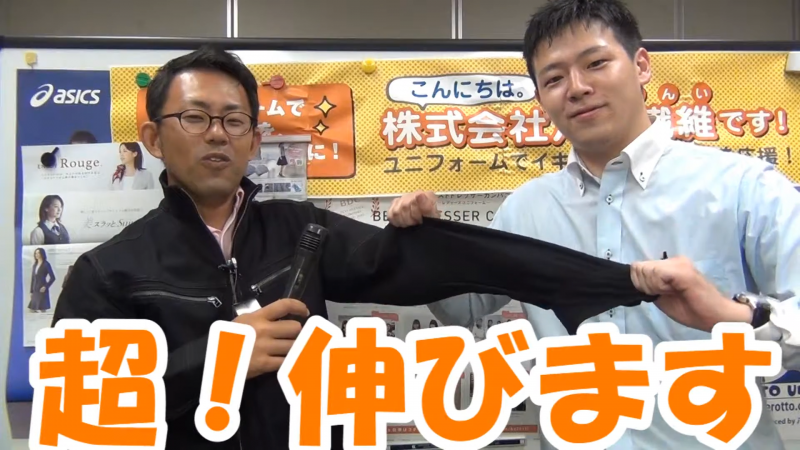 綿をベースにすることで、肌触りの良さと吸汗性を確保しつつ、ポリウレタンを高配合することで、まるでスポーツウェアのような動きやすさを提供します。動画内でも実演されている通り、生地を引っ張った際の戻りの強さ(キックバック性)も抜群で、型崩れしにくいのもプロには嬉しいポイントです。