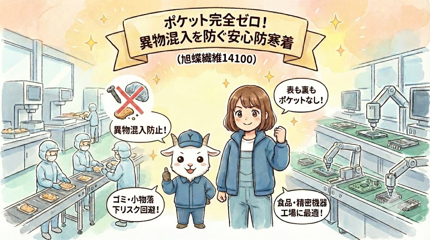 【異物混入対策の決定版】旭蝶繊維14100ポケットレス防寒ジャンパーを徹底解説!食品・精密機器現場に最適な理由とは?